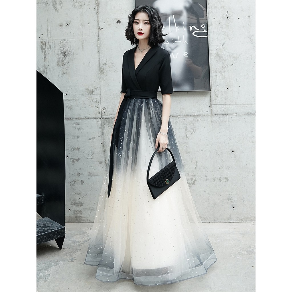 Pre Order Black Long Sleeve Ombre Wedding Evening Prom Dress Gown Plus Size Rbp1145 Shopee Singapore